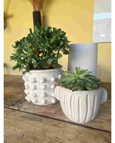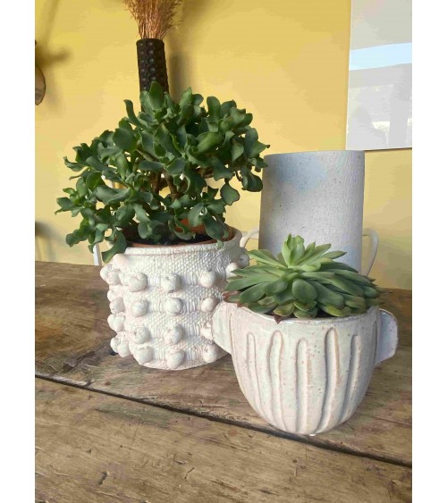 Sublimez vos plantes grasses avec ce cache pot en céramique, véritable point d'attraction pour l'oeil avec son relief si particulier.