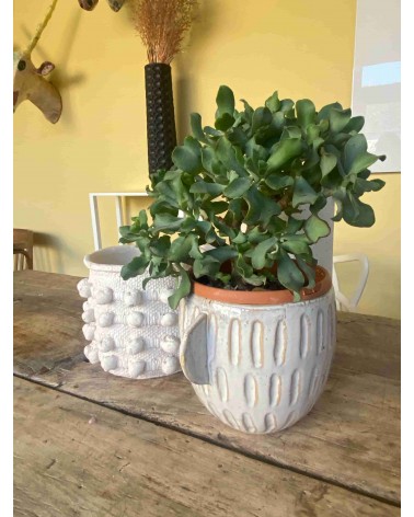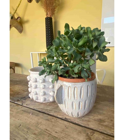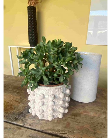 Le cache pot "dots" en céramique permet de mettre en valeur vos plantes vertes. Privilégiez les plantes grasses pour laisser toute sa place au cache pot et à ses jolis picots.