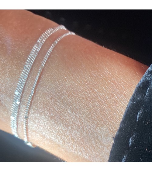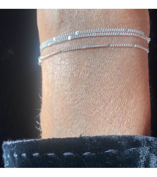 Les effets de lumière sur les motifs carrés parsemés de ce ras du cou apportent de petits accents lumineux à cette parure en argent.