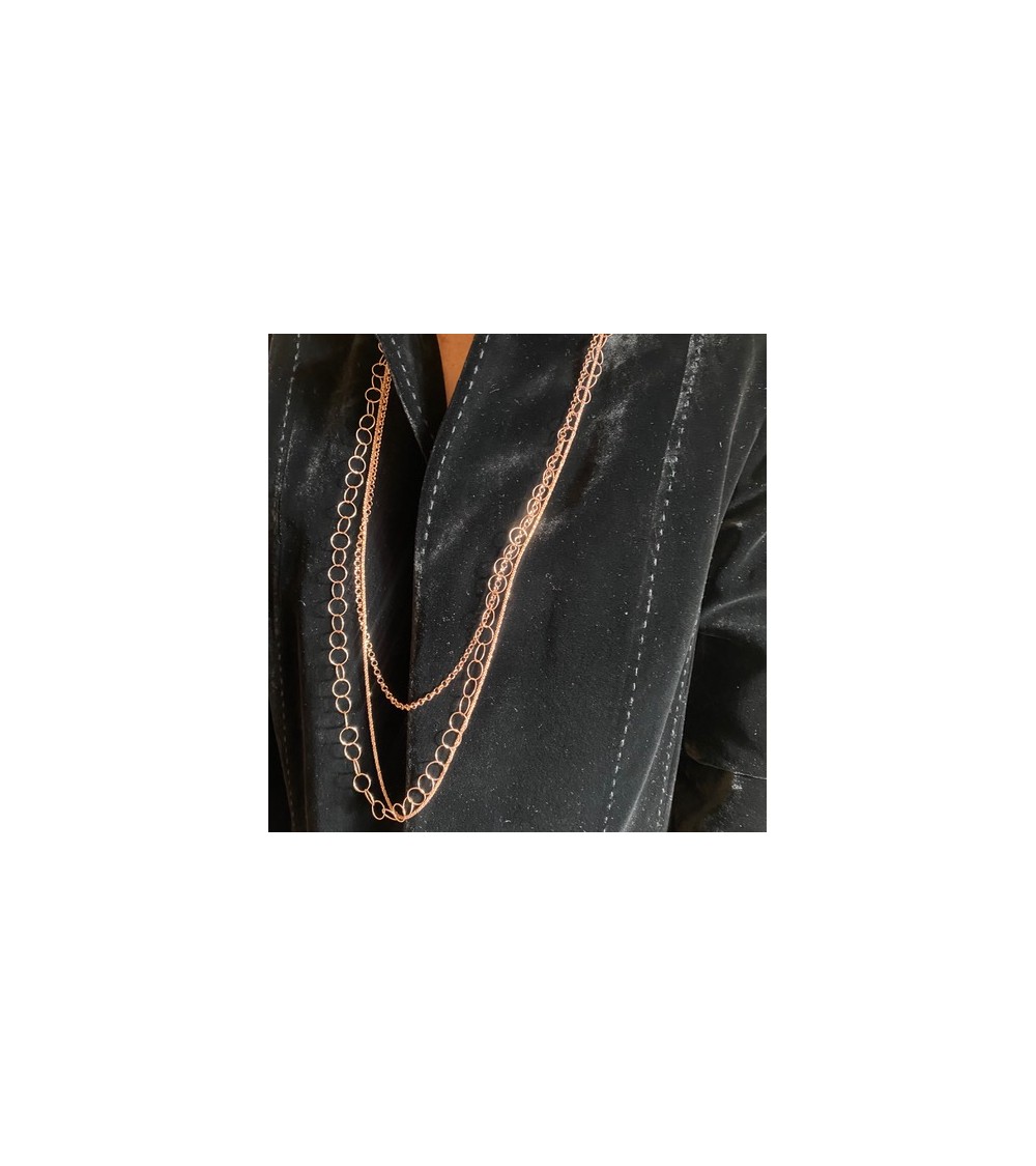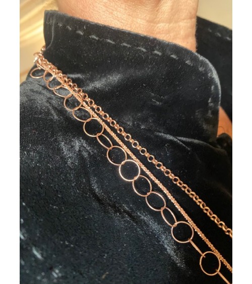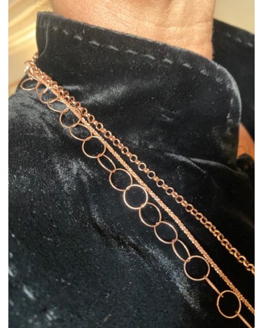90cm. Argent 925, fini Or Rose. Avec fermoir.
