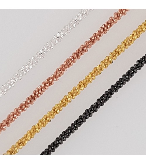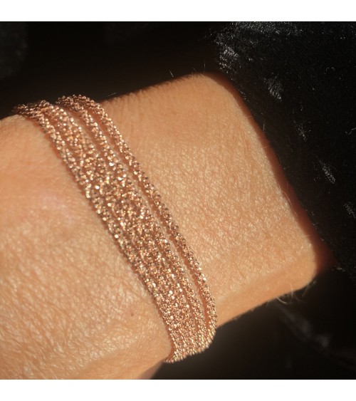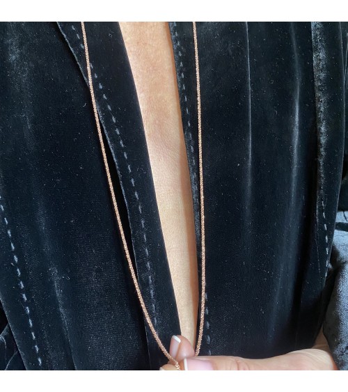 Un sautoir en argent 925/1000 fini à l'or fin rose avec fermoir. Se porte également en bracelet.