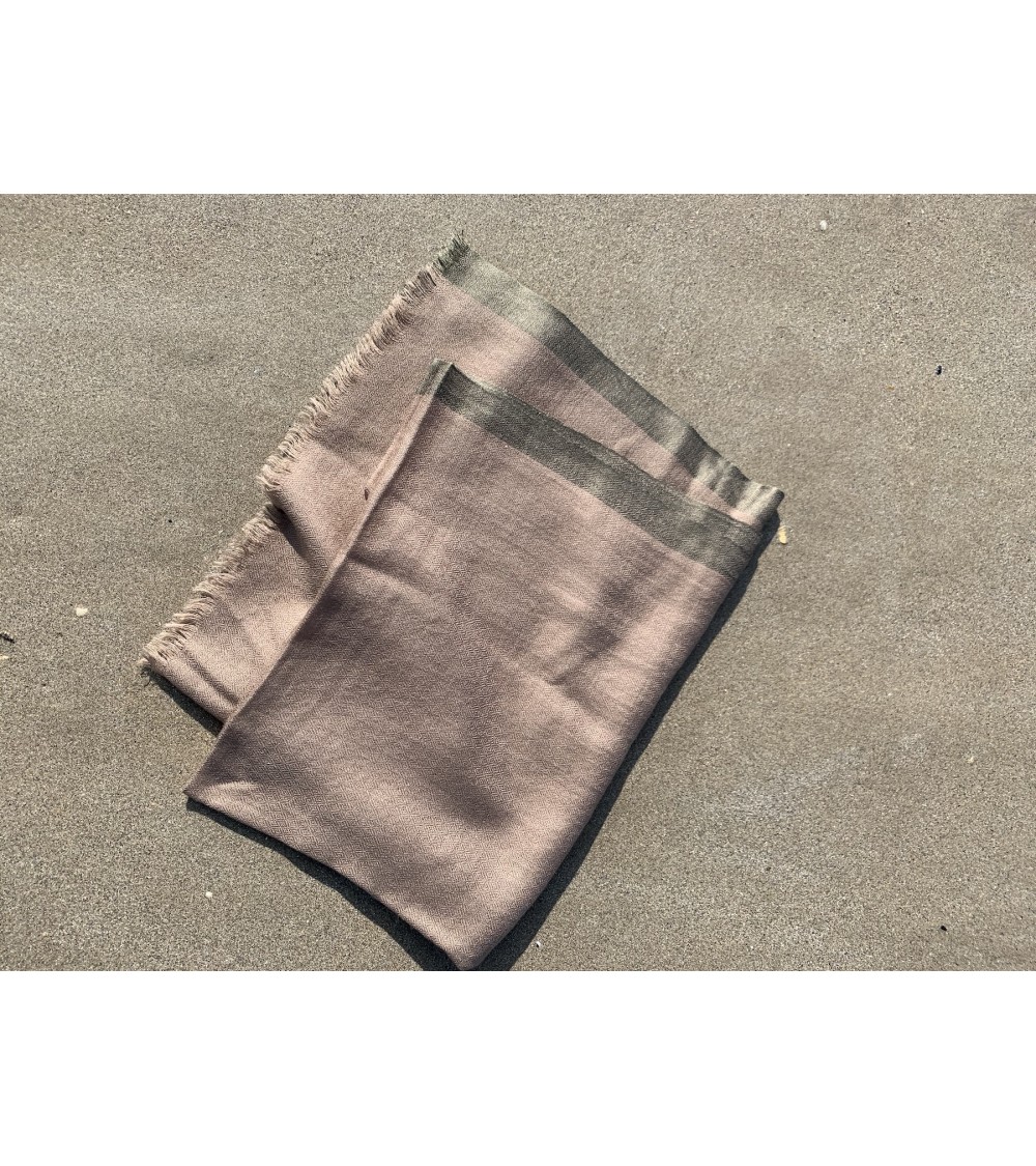 Etole " UltraLégère " 100% Baby Cachemire - greige-Liseré Kaki