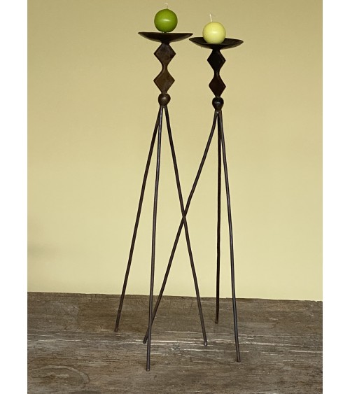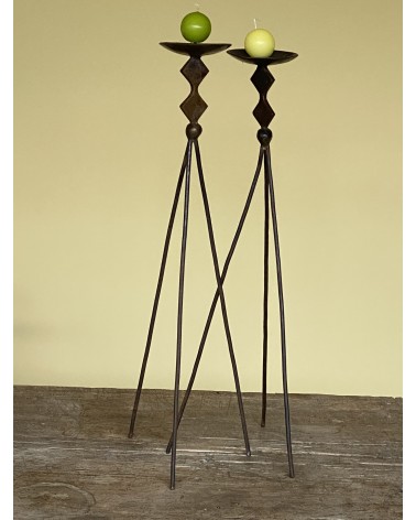 Paire de bougeoirs en bronze de technique artisanale